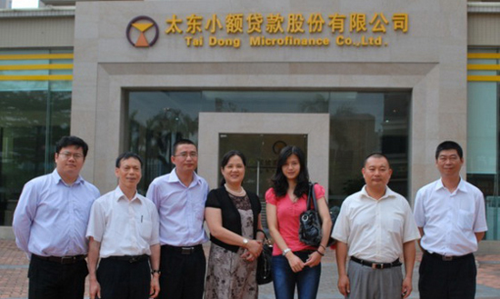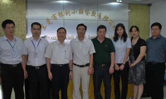 惠州市惠阳太东小贷公司总经理吴尚达(右二)、 惠州市大亚湾丰信小贷公司常务副总经理杨燕辉(右一)、惠州市惠阳志通小贷公司总经理李仪杰(左三)